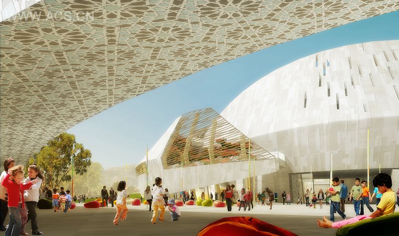 马萨尔儿童探索中心将是叙利亚教育机构——马萨尔——的中心地带。该中心将通过以科学为基础、实践为经验提供不同的活动,让年轻的叙利亚人为建设自己的未来积极地做贡献。探索中心在大马士革中心区域有着独特的地理位置。该大厦包括展览、图书馆、教育和管理空间。该中心在这个170,000平方米的公共领域中将成为一个综合的、最具有吸引力的建筑。建筑形式的灵感来自于大马士革蔷薇。该案提议外部采用贝壳状结构,使得耀眼的光芒能够照射到建筑内部——如同光在玫瑰花瓣间过滤。展厅和行政区域在玫瑰花瓣间展开,创造了一种室内迷宫旅程,这种灵感来自于行走在由墙壁和以天为窗而形成的古老的大马士革城中。