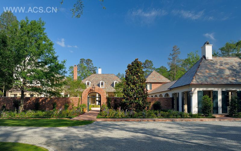 为了设计这个位于德克萨斯州休斯顿的12000平方英尺别墅,塔特采用了克里奥尔建筑风格来设计此项目。在这个项目中,塔特设计了多个建筑侧翼以及附属建筑,他将克里奥尔风格设计演变中所反映出的各种不同细节运用到了该项目的风格与材料设计之中。儿童房的形状就像是一只鸽子,而带有陡斜屋顶的独立式书房具有一种法国西印度殖民建筑的风格,另外,环绕式的墙壁、西班牙式拱廊和石灰砖侧翼都暗示出了西班牙式风格对该建筑产生的影响。整个空间都富有克里奥尔风格的细节设计,从门廊处的几个法国式门口到一楼的房间都体现出了该设计风格,它们还与联邦风格的中央入口以及希腊复古式的室内模型装饰结合在一起,而主住宅则反映出了19世纪的克里奥尔式美国风格。它能让人联想到这个独立别墅的变换风格,整个房子充满了一种富有历史感和浪漫情怀的氛围。