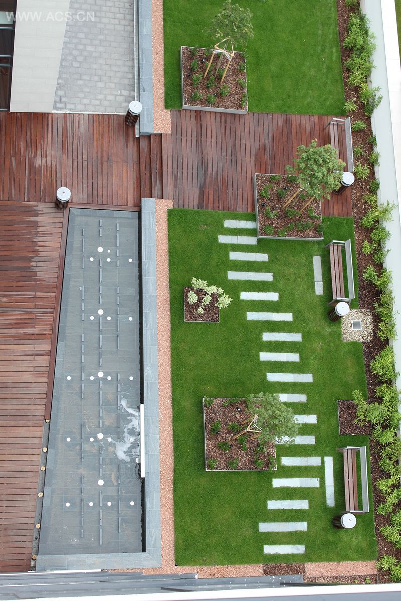 阳台旁边是该大楼后院的屋顶花园和露台。第一层一个小的公共空间里设有水景观在其中。被遮掩的较少的空间连接通往屋顶花园的进出通道,那样人们也都可以使用这片绿色区域。