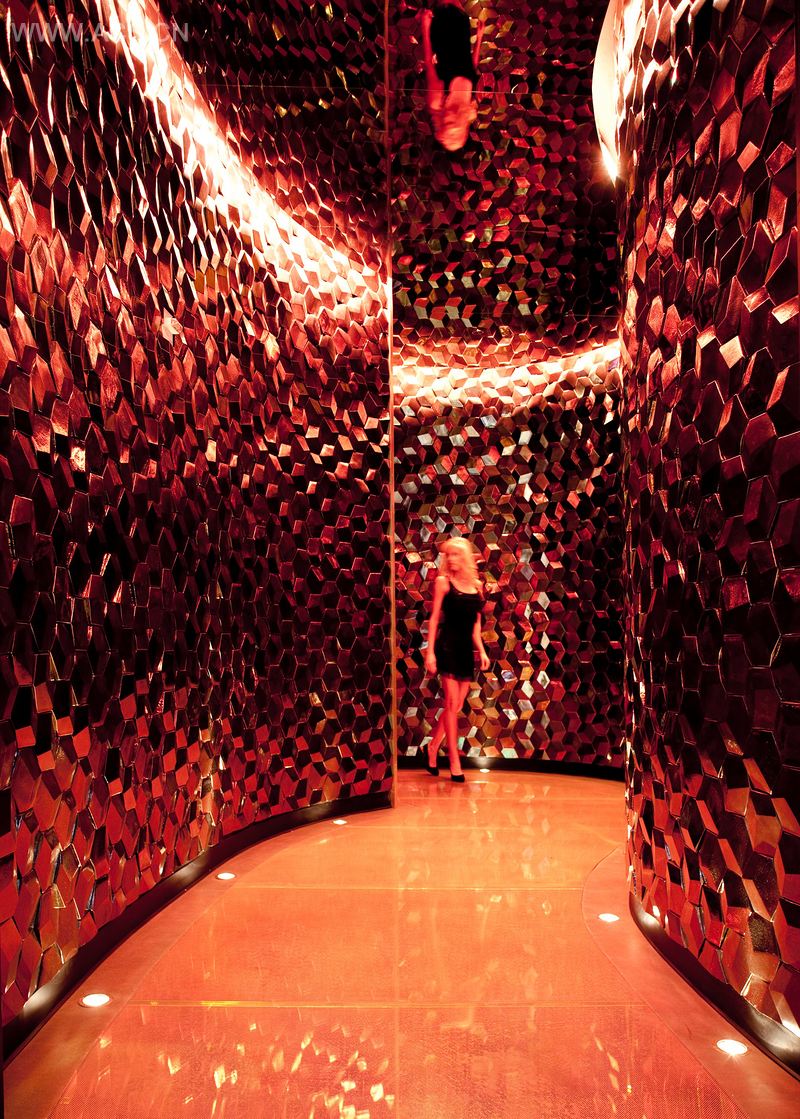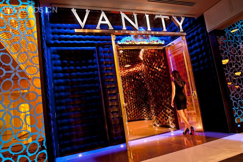 Vanity是一家折衷分层叱咤风云的珠宝盒俱乐部。它是融合了青铜和黄金金属色、古董镜、擦铜和黑铬饱的宝石色调的组合。到处都使用了珍珠和手工切割水晶。闪闪发光的纹理和蜂窝状表面为俱乐部提供了一个有机的背景幕,形成了反射面和视差。吊灯是由20,000个可编程LED和20,000个晶体构成。它悬于玻璃地板的上空,当它打开的时候可以散射20英尺,波动在整个宽阔的舞池。上面可以滚播媒体视频、动画、短信等。