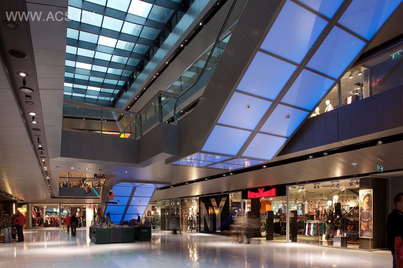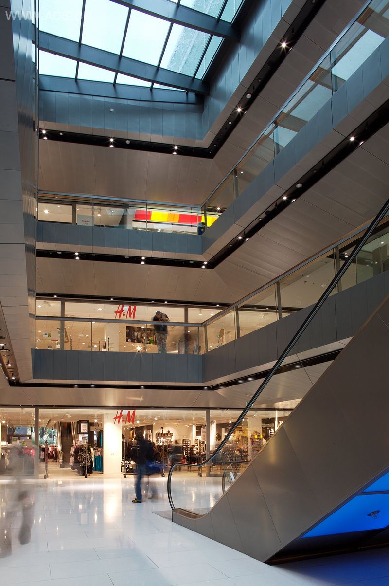 新旧建筑之间的统一性是由一个环形购物中心将新旧建筑连接而形成的。典型的“跑道”形式替代了原先的死胡同形式。新入口和垂直的流通系统重新定义了建筑内的深入部分以及整体建筑之间的关系,还由此创造出一种合理的定位和透明感。