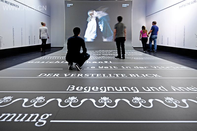 参观者会感受到这个展厅就像是单独章节的一种动态序列,它打开了通往多个“文化世界”的入口。九个主题可以理解为两个主要要点:“理解世界”与“塑造世界”。两者之间的过渡地带由一个带有门口的监控叙述空间组成。