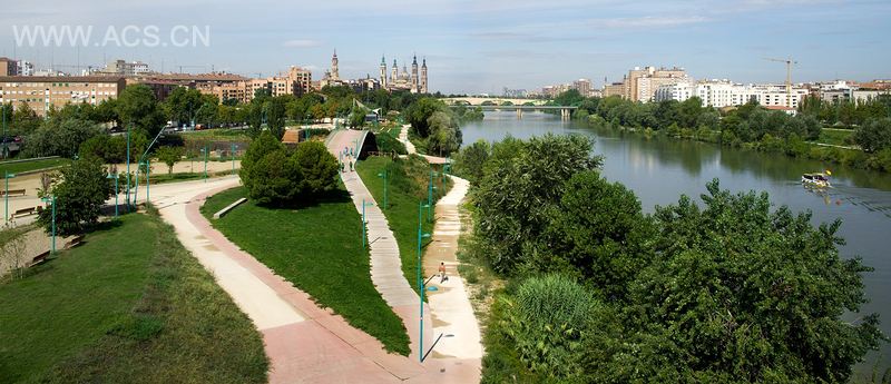 在景观中水的特色就是动态的瀑布和静态的水池反射相混合,抛光的花岗岩、镶嵌成棋盘花纹状的石头和钢材都被包含在水池内。水景观的选址充分考虑了