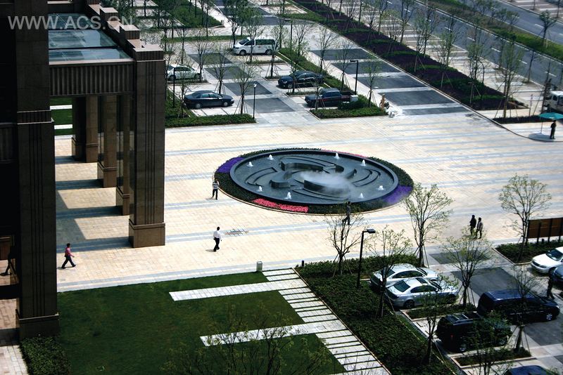 条纹状的路面与建筑群及各个过道相呼应,这个固定的纹案成为整个区域的基础,融入、联合起各个广场。此外,人行道在排列上延伸至停车场并与广场相连。