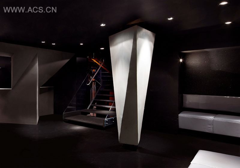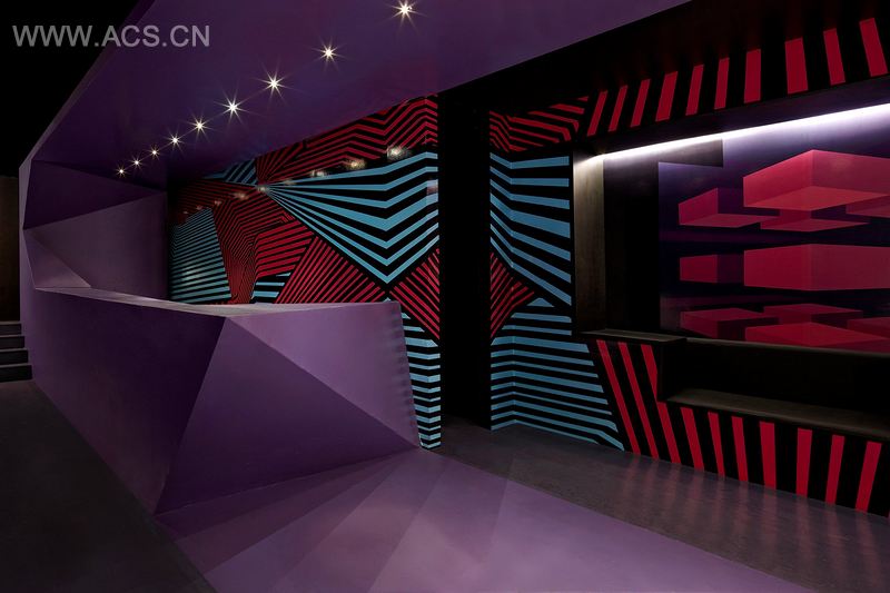 雕塑形式建立在直线的基础上,摒弃了传统的90度角设计。主要采用的形状为六边形,并利用了它们不同尺寸的所有层面来完成设计。棱镜元素和台柱由三角形与正方形的结合而形成,其余的宝石图案会根据人们站在舞池的不同位置而鼓动和改变人们的感知力。不对称的设计元素出现在每一个细节之中。