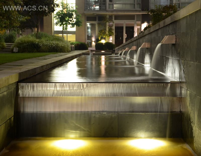 这个城中“村”是为2010年温哥华冬季奥运会运动员住宿而建,奥运村中有几处具有独特设计的水景,它们捕捉了奥运会的精神。项目重点是水的有效使用和在城市内打造一个环境和社会都可持续发展的“社区”。例如,这些水景是为了把大型水槽收集的雨水置于空气中,而不是使用饮用水。福溪边缘的水景则是海洋的延伸,有水平和垂直的水面,使用各种有趣的材料和效果。