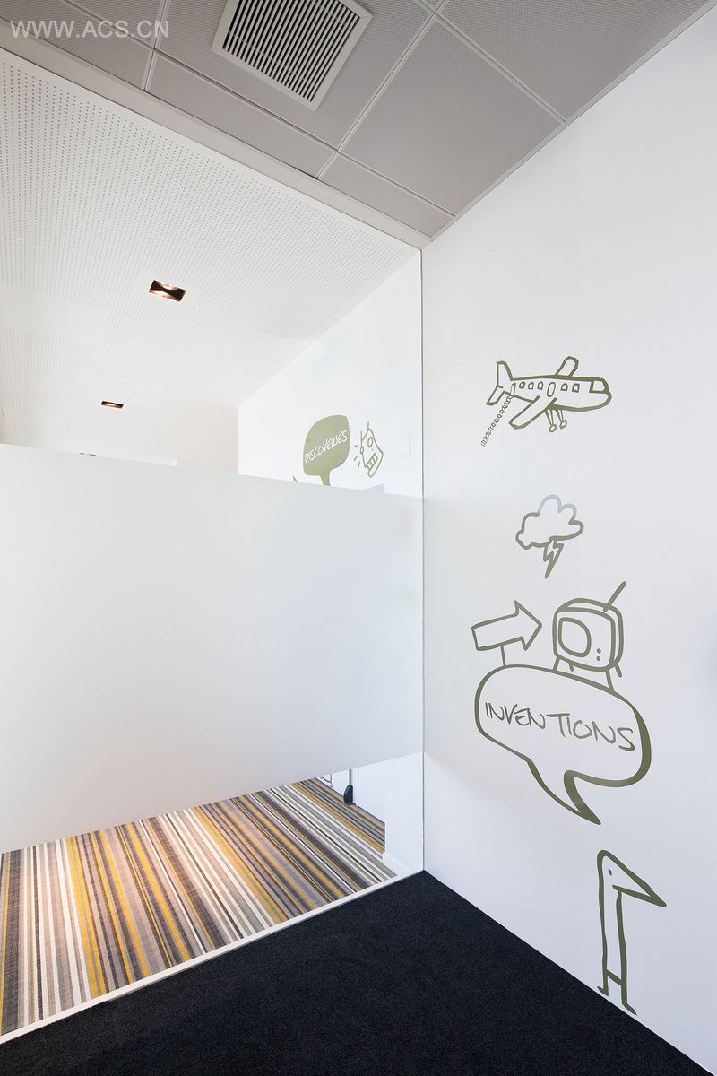 这个新的研究所办公室占据了新UPTEC大厦的两层楼,总面积为1660平方米。“流通”是这个项目的核心:所有的空间沿着临近的玻璃墙逐一出现。沿着主轴线行走能通往所有的空间。这些空间都有不同的功能和尺寸,它们在醒目的图案中产生并统一在一起。一个波浪状的水平面穿过了开阔的地板,创造出不同的空间和氛围。