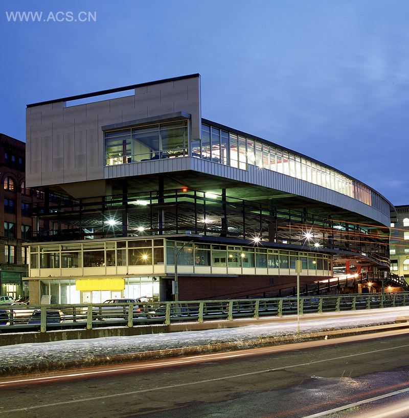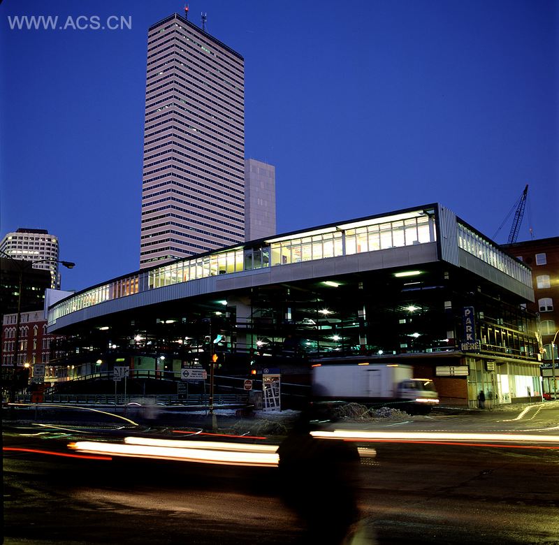 林肯街车库是一个在城市环境中的探索。最初的建筑是一个由波士顿新兴的汽车文化塑造和和规划的车库。它的弧线形规划完美地展示了通往州际公路的驶进坡道的曲线。车库是在“Skyway”(由Big Dig initiativ波士顿的高架公路,现在地下)的建设过程中施工的,最初的两层结构非常实用。它使用了最薄的钢筋和一个质量不高的部分以容纳停车坡道和楼梯。1973年建成的顶部甲板添加了附属办公空间。我们的花费用于重新检查覆盖层,升级机械系统,并提供代码升级。林肯街车库是一个城市中的建筑,一个建筑中的项目。我们考察了那些我们认为最重要的视野:从密集的砖仓库之间的唐人街上方的狭窄视角和沿着林肯街的另一视角,以判断停车场入口位置和清晰度的视野,以及在Surface Road上的建筑物。高栏杆与毗邻建筑的檐口线相匹配。问题在于如何通过使用新材料和更明确的“词汇”将这三者都在环境中清晰地呈现, 通过选择性地添加和减去钢骨架周围的外皮,设计两个单独的覆盖系统,我们可以摒弃围护结构、屏幕和体量的想法。外皮和屏幕之间的相互作用、框架和体量使得建筑以实用性的设计遗产为荣,同时融入当代元素。
