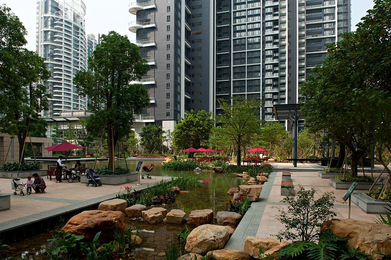 该项目旨在现代深圳的高密度公寓居住区找回人与自然的联系,让人们在放松的户外环境里享受邻里般亲密的社区生活,并让这个园林景观彰显岭南自然之美。