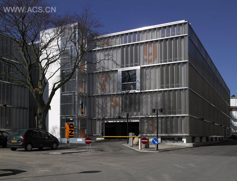 这个4½层的停车场包含了350个停车位,外形上设计成与已有建筑和谐相融的现代风格,完善了整个街区结构。褶曲的铝质外立面延续着城市构造线条,显眼的凸窗再次诠释着周边的建筑风格。