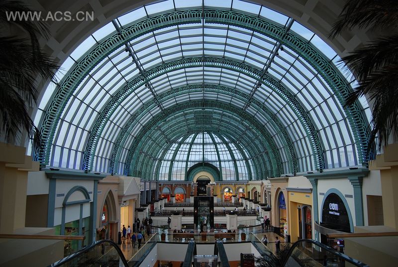 著名的迪拜滑雪村,一个自动控制气候的室内滑雪场,就位于这个酋长国购物中心里,而这个购物中心也被誉为是全球头等的“购物胜地”。这个项目被构思和设计成一个独特的购物中心,它的每个细节都有着不同的世界级设计元素,而其巨大的场地规模整整达到了240万平方英尺。