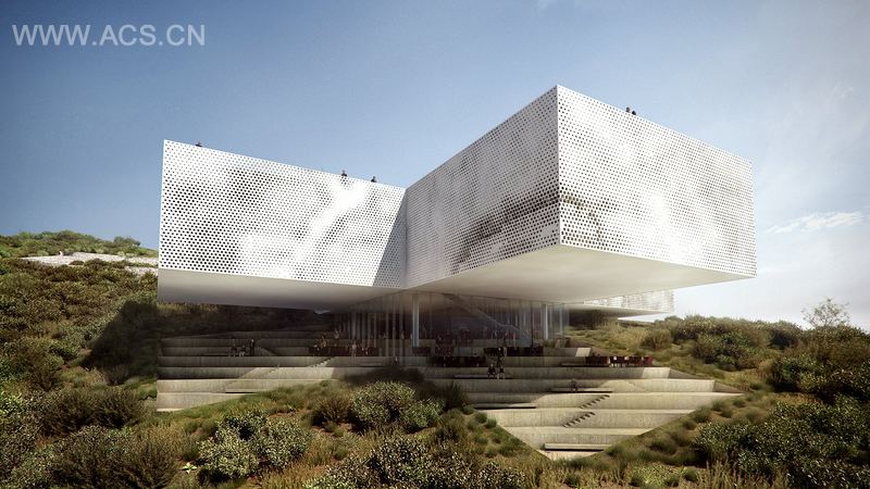 这个塔马约博物馆扩建项目的主要概念就是一个“展开的箱子”,它向四周展开,邀请游客进入参观。包装、复原和贮藏空间都将作为额外的文化空间,让参观者了解每样艺术品为了达到其明确的目标效果而需经历的阶段。这个项目极为直接、强烈,并富有象征意义。博物馆的外形设计方案源于客户对此项目的初步研究,它明确了博物馆的最佳功能,并利用在顶部能看到最佳风景的优势而提升了博物馆的层次。利用极佳的陡峭地形,在较低的遮蔽处设置更多的社交平台。内部和外部的空间相互重叠,为每个功能区提供了最好的环境,并给表演提供了最佳的气候。