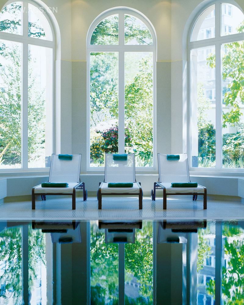 同样的风格形态也可以在850平方米的温泉水疗庄园中找到,该温泉水疗中心是专门为放松休息而设计的。在这三层的温泉水疗中心里,所有的都被设想到了,为的是在这个真实的城市绿洲中给大家提供从身体到心灵的独特时光。