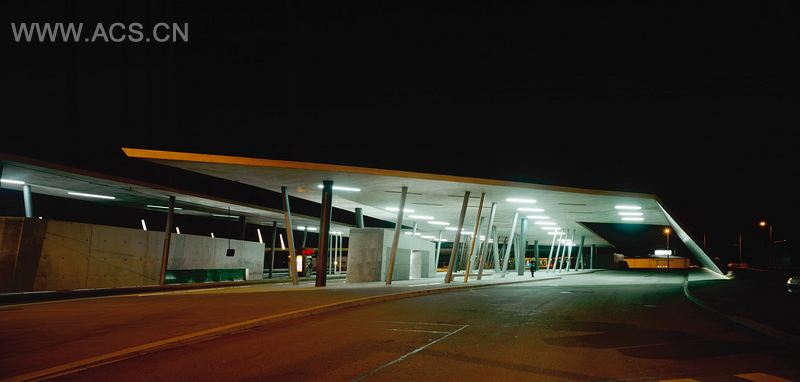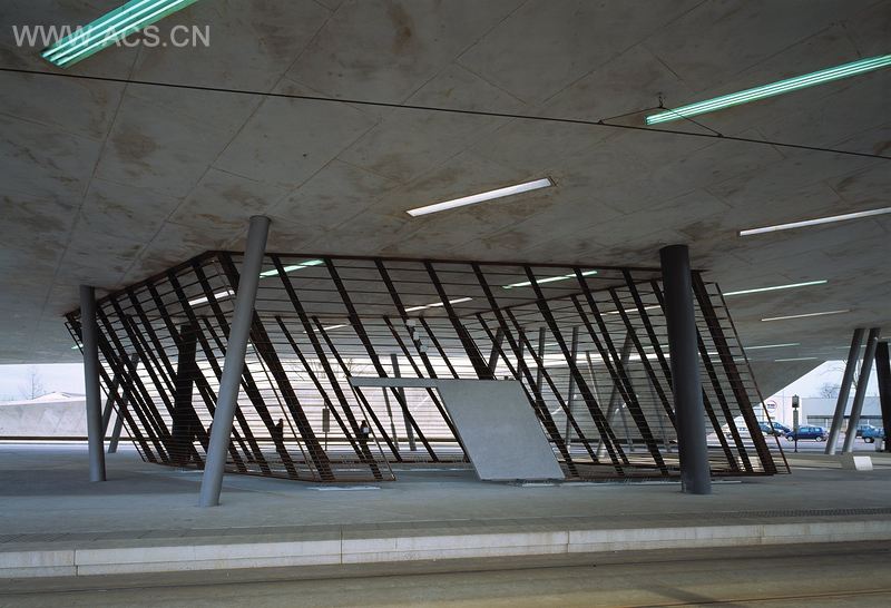 斯特拉斯堡市已经开发出一条新的有轨电车线路,其目的是为了鼓励人们把私家车停在城市外边的一些特别设计的停车场,然后乘坐有轨电车进入城市中心。部分动机是因为B线的建设,它将贯穿城市南北。项目邀请了扎哈·哈迪德等建筑艺术工作者采取新干预措施,在线路北部顶端设计可容纳800辆车的电车总站和停车场。整体的概念基于重叠区域和线条,它们编织在一起,形成一个不断转移的整体。这些“区域”是汽车、电车、自行车和行人产生的运动模式。每个都有轨迹和追踪途径,以及一个静态固定装置。这就好比交通工具类型(汽车到电车、火车到电车)之间的过渡,是通过车站的材料和空间过渡、景观和环境呈现的。车站包含一个基本的等候区、自行车存放处、厕所和商店。这种三维向量的意义在空间处理上得到加强:线路游动,通过地板上的光线轨迹、或家具或天花板上的着陆灯而得到延续。。这个想法是为了创造一个充满活力和吸引力的空间,并且空间在功能方面和循环方面得到明确定义。停车场分成两部分,可容纳800辆车。该选址的汽车作为短暂的和不断变化的元素的概念,通过作为黑色柏油上的白线“磁场”而宣示。这种种描述了每个停车位,在场地最低处开始南北对齐,之后根据场地边界的弧线慢慢旋转。总的来说,灯柱“区域”维持在恒定基准并结合了斜坡地板倾斜度的高度。其目的还是为了得到所有范围内的静态和动态元素之间的往复呼应。项目通过开阔的景观和公共室内空间的清晰过渡,希望能提供一个“人工自然”的新概念,模糊自然与人工环境的界限,改善斯特拉斯堡的公民生活。
