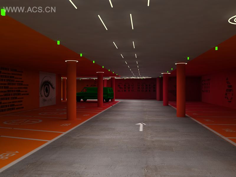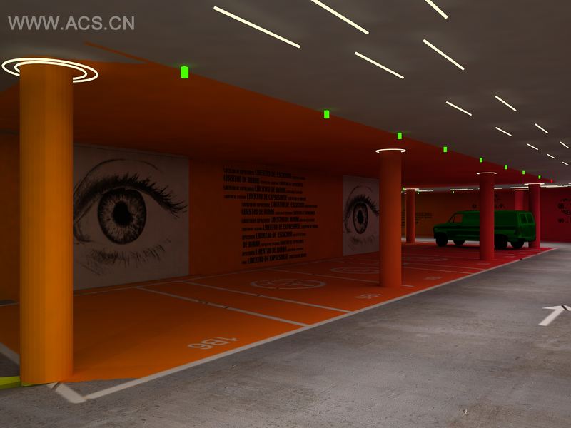 主要元素色彩:它担负着双重功能。一方面,它强调了这个项目所基于的概念。另一方面,它为我们指示道路,例如,越接近红色区域则表明你越接近出口。照明:每个停车位都装有光电灯来指示车位是否可用。(绿色=可用,红色=不可用)图解:以Elouard的诗歌“Liberté”为灵感,我们在墙上布满了表示“生命的权利应如你所愿”的符号。每个符号诠释着自由生活的权利。