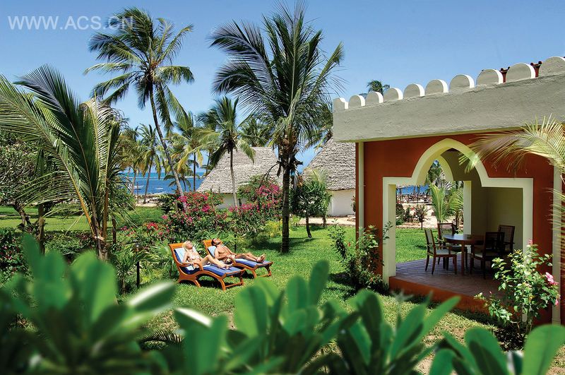 宽敞的客房和套房、梦幻般自由形状的游泳池、海水浴疗法 SPA、精致的意大利美食等都隐没在靠近马林迪沙滩的修剪整齐的花园里。