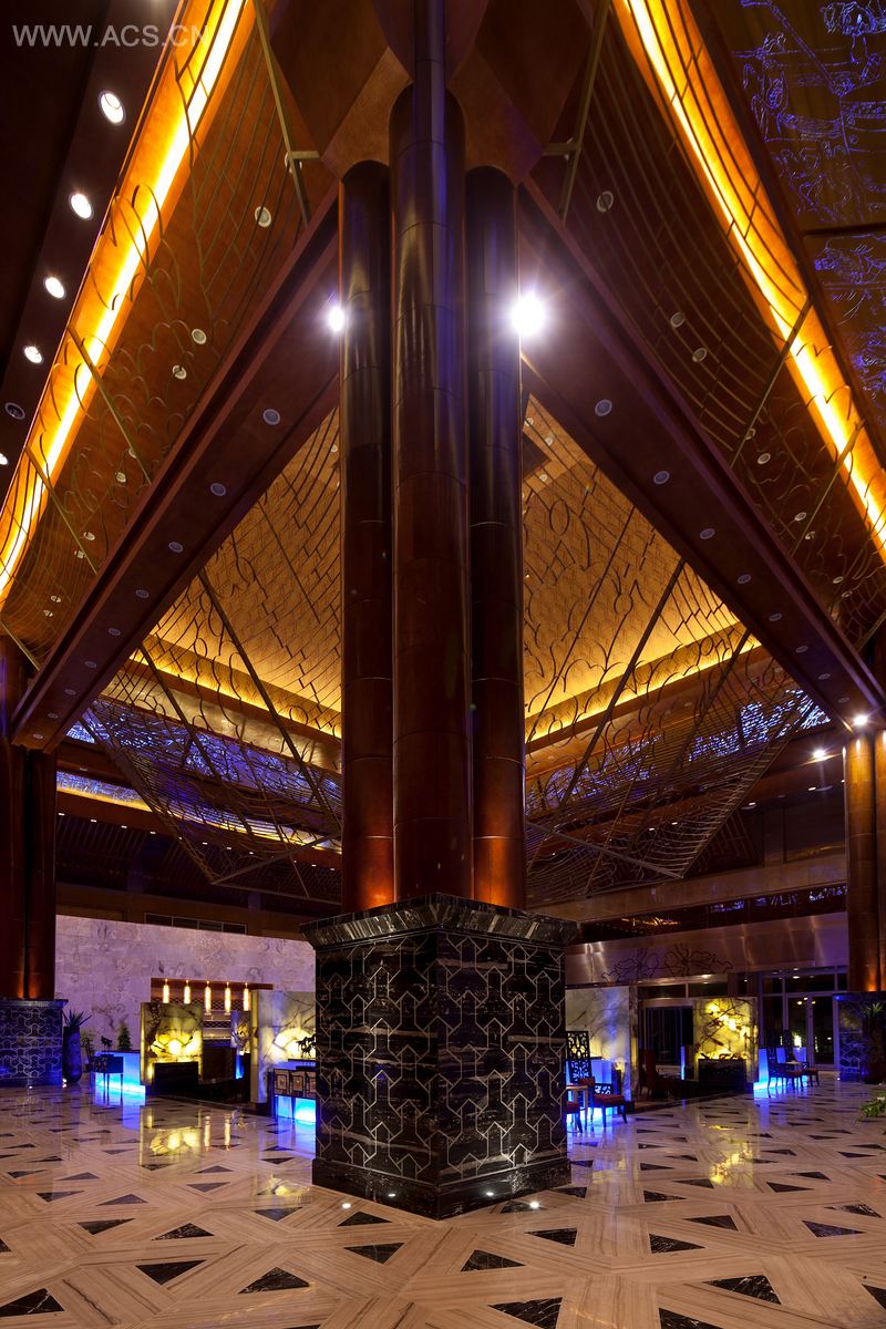 酒店空间设计上,以提取张飞庙的建筑色彩、形式感以及独特的建筑元素,来呈现度假休闲的空间感;借张飞的传奇典故来诉说酒店的文化;用木结构的形式,从中穿插云纹和水的元素;将三国演义故事、英雄人物贯穿其中,用“饮马怀故人”的艺术表现手法来表现主题和陈述故事,表现一种浓厚的地域文化特色。这是一个有着深远故事及文化的主题酒店,又强调出酒店“驿站”的形象。