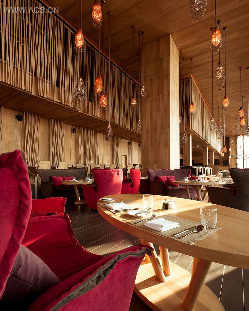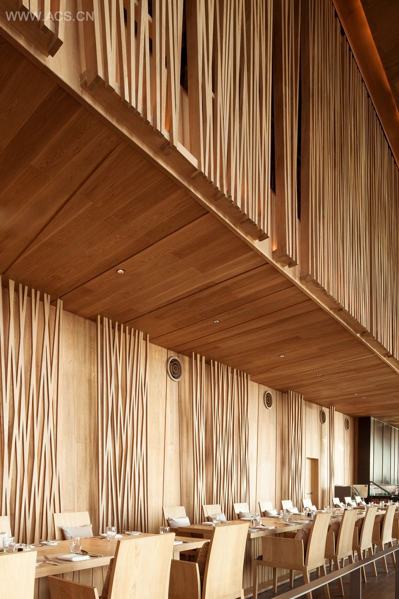 芭提雅希尔顿大酒店是芭提雅中心区更大的多功能综合体的一部分,俯瞰着芭提雅海滩。大堂和酒吧占据着酒店的 17 楼,远远高于热闹的芭提雅海滩。从一端进入这个空间,当电梯门开启,便是宽敞的大堂区。整个天花板平面,因为建筑上的设计,布满了动态的波浪纹路,引领着客人通向前方的滨海区。天花板的构造成为这个空间的一大特色,而地面的简洁风格又为其提供了一种宁静氛围。