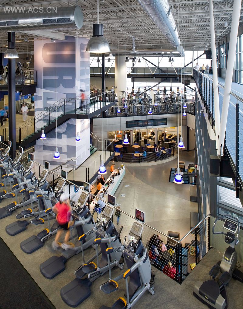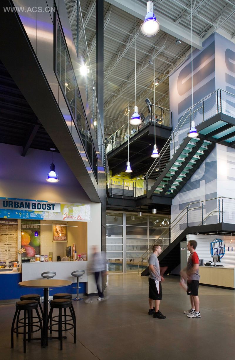 该场所是一个独立的占地面积4 2985平方英尺的有三层楼的建筑。这一设计也显示出设计团队希望提高俱乐部会员以及整个社区的活力。北极星城市健身中心给人们提供最现代化的运动设施:一间含氧电影院,一间动感单车室,室内游泳池,室内跑道,篮球场,壁球场和安装有平面屏幕的电视的重量训练区,个人训练场和大众健身区。