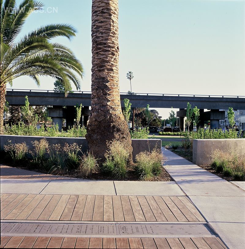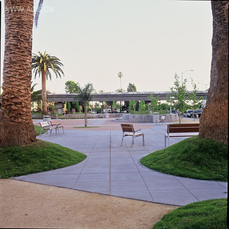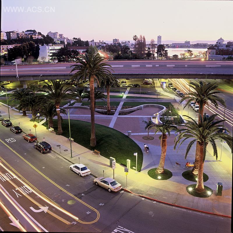 Splash Pad公园作为梅里特湖公园的重要一部分,被高速公路与其它公园分开,现在主要作为历史悠久的巨湖剧院的前院。新设计通过弯弯曲曲的步行道增强了它与相邻公园的联系,步行道末端与梅里特湖的“necklace of lights”相连。空间的中心是集会空间,由水墙定义它的边界,有一些小路通往相邻的商业走廊。Lake Park Way每周可以作为农贸市场或作它用。