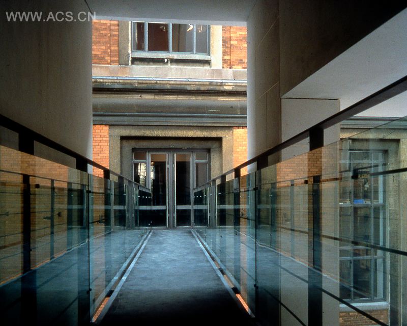 扩建建筑形成了一个灵活而细长的建筑,它在柱子之上,面向公园,从主体建筑中分离出来 —— 它漂浮在树木的华盖之上,身处透明的底层上部,充当了新旧艺术大楼之间的“窗户”。门廊和“圆形展厅”是博物馆的主要接合点。一条缓和上升的弧形楼梯将展厅空间引向较高层。浮桥连接了展厅楼层和新建筑楼层。
