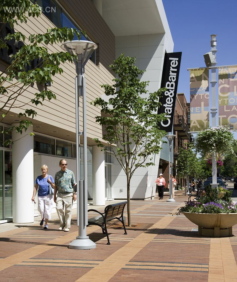 克莱顿巷占地38 445平方米,由郊区改造为城区,之前大部分面积为停车区域,经过翻新,克莱顿巷周围的场地包括停车场等都转变为以人为本的街区,各种设施优先考虑行人。这个综合项目包括高档零售商铺、五星级酒店、办公空间,以及漂亮的住宅区。总之,生活、工作和娱乐在这儿合为一体,它在丹佛市首屈一指的街区为市民营造了一个充满活力和令人兴奋的环境。studioINSITE开发的公共广场、室外庭院、水景、横幅、定制灯具、座椅、园林绿化和特殊铺装图案等共同形成了独特而中心鲜明的街景系统。