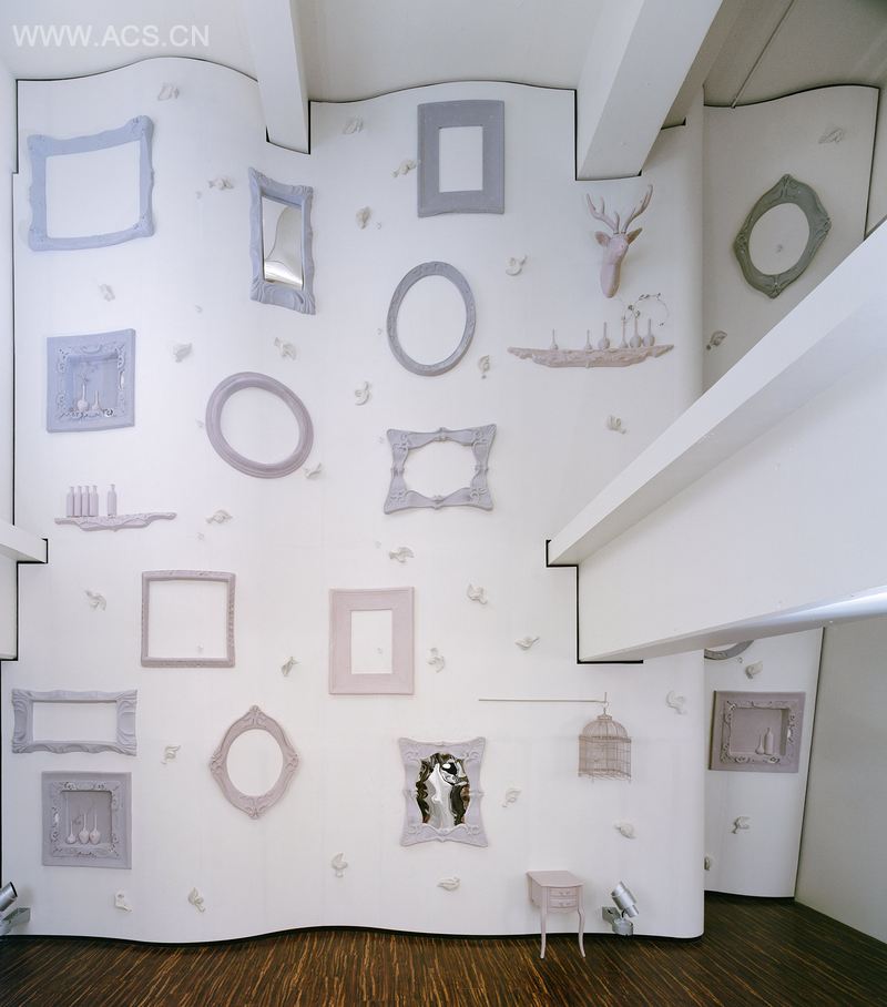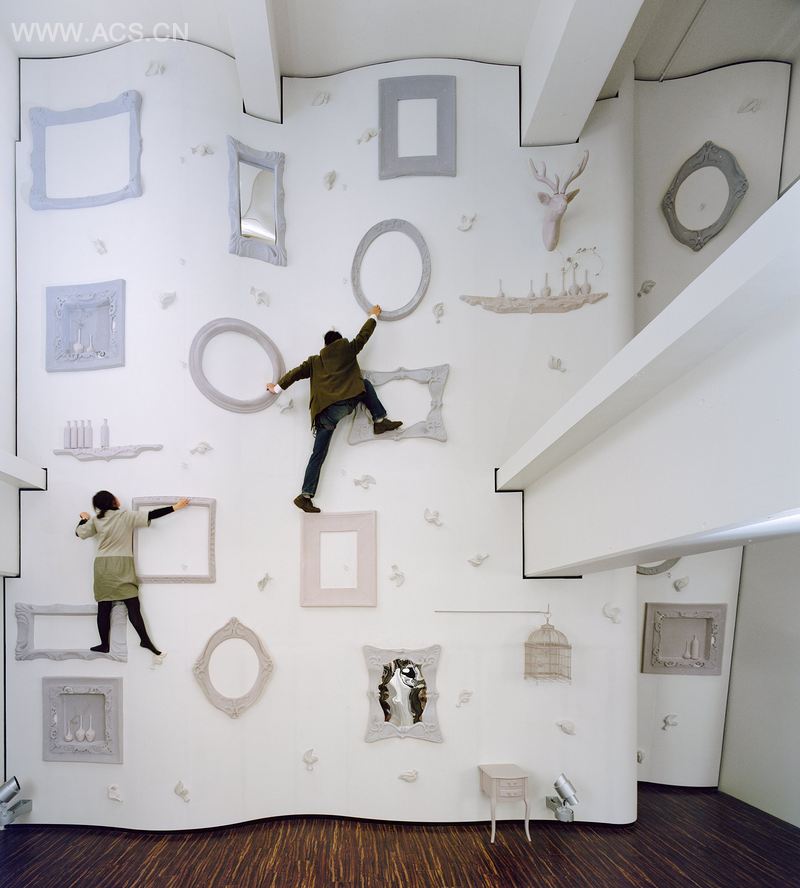 为了表达最原始的品牌理念“运动产生美”,我们采用“在表参道攀岩”这一设计主题,将这项室外运动与东京的时尚街区结合起来。我们的室内设计构思就是使用相框,镜子,鹿头,鸟笼和花瓶这样的元素在陡峭的墙壁上构成难以寻找的攀岩把手。我们希望通过这一独特的攀岩墙能够激发起新来者的运动兴趣。