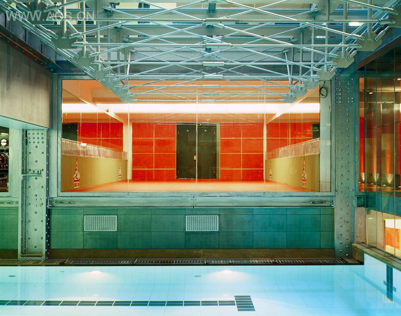 健身俱乐部包括:臭氧泳池和水疗中心、攀岩墙、3个专门的健身区,普拉提练习室、拳击台、高海拔模拟缺氧室。设计理念是创造一个空间,让每个人都体验和享受这个充满活力的空间。客户想要打破典型的健身俱乐部设计的模式,要求第三空间的建筑师必须不惜一切代价打造出一间与众不同的俱乐部。进入第三空间的入口处,面对着你的是一个位于建筑正中央的视觉区,从这里往下看,你能看到一块用来进行有氧训练的玻璃地板。在玻璃地板下面则是一个地下泳池。而在你的上方则是一个大型顶灯照耀着的双高空间,这使游泳者能够看见天空。而在进行室内设计之前还有一些重要问题需要得到解决,其中隔音问题就是最重要的一个。 丽晶宫酒店占据着这个建成于1930年的建筑的上面五层楼,建筑的南边正是皮卡迪利剧院。镜子墙面,玻璃围栏等元素的使用则增添了建筑内的透明感。从建筑物的不同位置,你都能观察到人们在进行不同的活动和练习。
