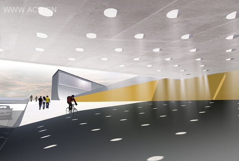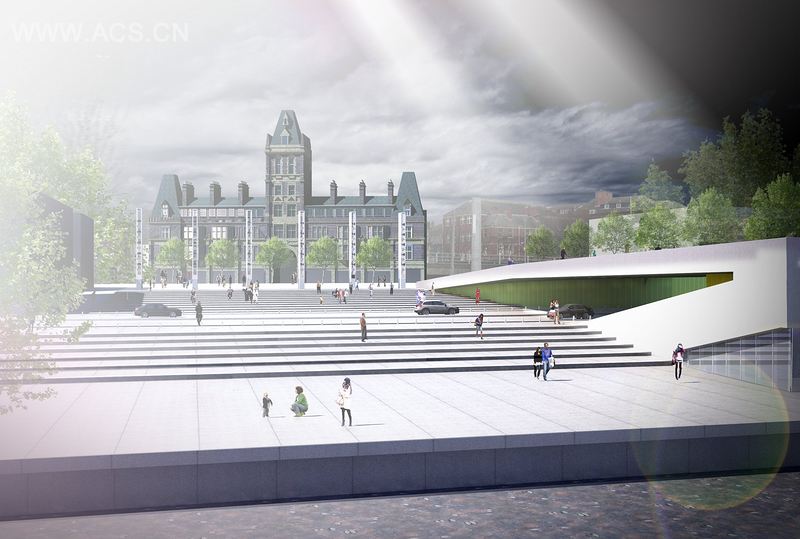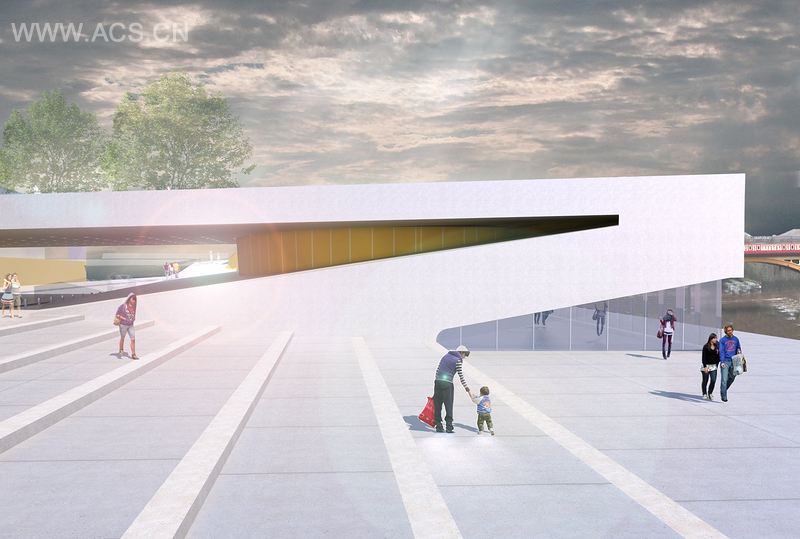 本案作为一个重要的公共空间,是城市的重要流通点,这里车辆及行人的基本流通都需要精心规划。它是一个汇合点,可以看到市民和他们的运动轨迹,且体现了城市的不同历史。设计师提出的替代方案是为项目打造连续的表面,用途上优先考虑行人;所采用的雕塑形态为市民带来难忘的经历。河的西岸是镇桥,这成为一个人们停下来定位的地方,从这儿的斜坡下来,人们可以来到东边的河流和西边的维多利亚市场大厅之间免受阳光暴晒的公共空间。
