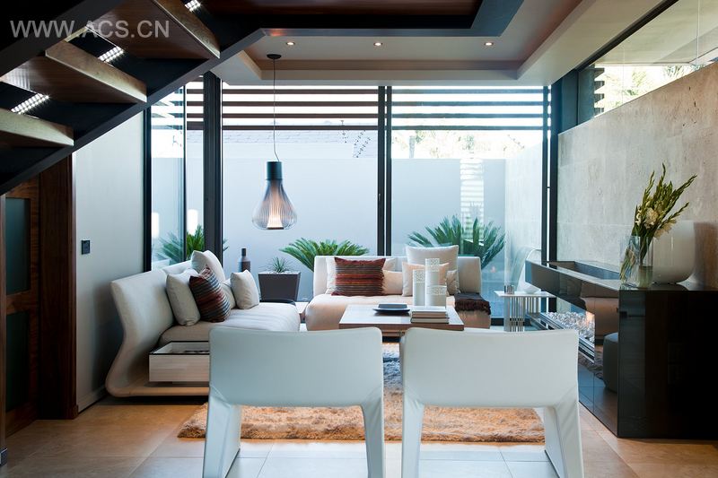 阿布巴克独栋别墅身处蓝天、白云和棕榈树下,它的屋顶选材考虑到了当地的炎热气候,用色则选取了蓝色,外形清爽宜人且自然地融入了周边环境。室内设计则现代简约,营造出明净、舒适而不失优雅的整体效果。
