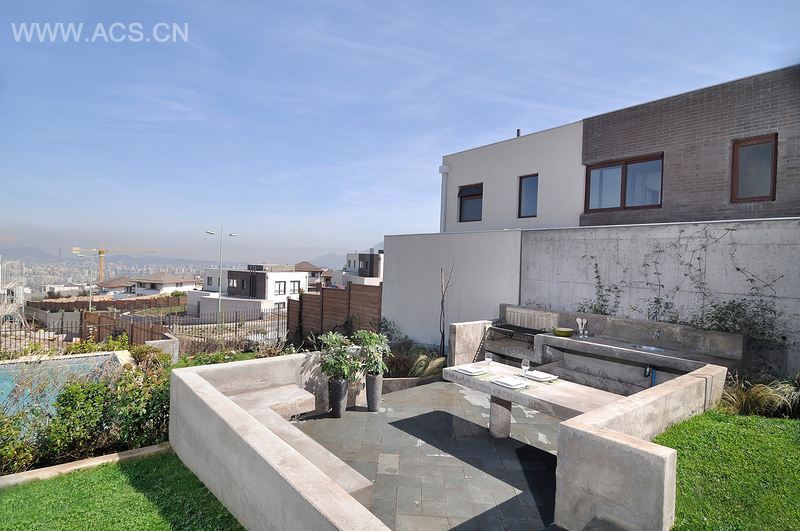 该案特色是大量混凝土的使用,与现代外貌的生活空间及户外分布。混凝土和木质材料,与阳台的大自然景色形成了一个明显而又微妙的对比。混凝土和木质材料,与庭院的大自然景色形成了一个明显而又微妙的对比,指向穿过灌木丛的通道,通道相应地伴随着被下行的小径分界的循环,通过颜色、纹理和其它如材料对比从而形成一个更完整的冥思步行环境,该案的设计以位于较低处的游泳池结束,通过不同地形高度将视觉景色和其它路径融入其中。