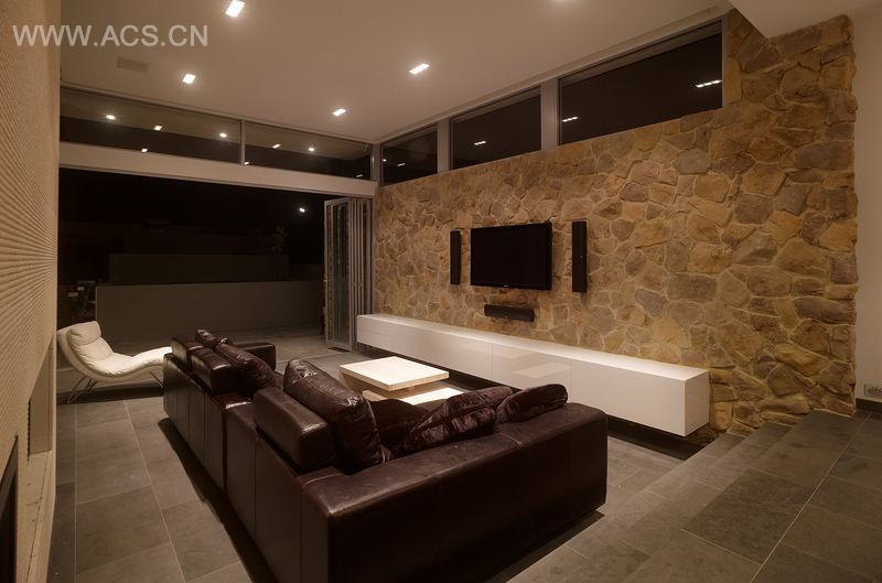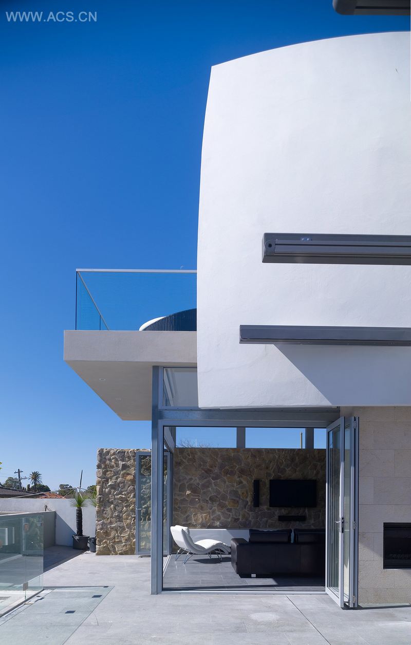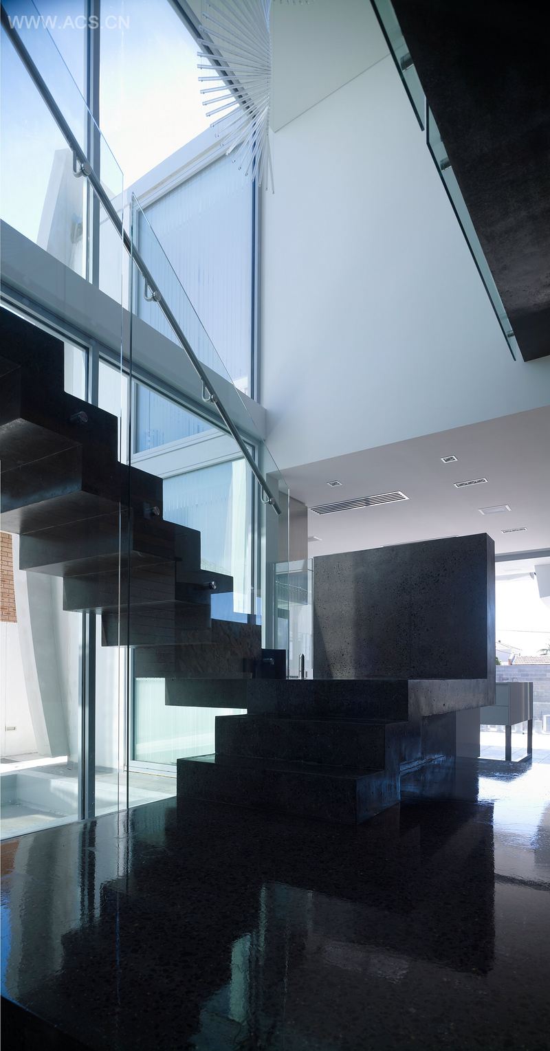 项目的第一阶段致力于实现“房子的交叠”。最高的一层是生活区,东西走向以最大程度获得日照,较低的一层则采用南北走向,面向海滩的美景。项目采用了简单的可持续发展原则,却有着吸引眼球的外形。因为房子是在陡峭的斜坡上,建筑的钢架结构只是轻触地面,尽量减少对环境的影响。住宅的外观仿佛雕塑一边拿。