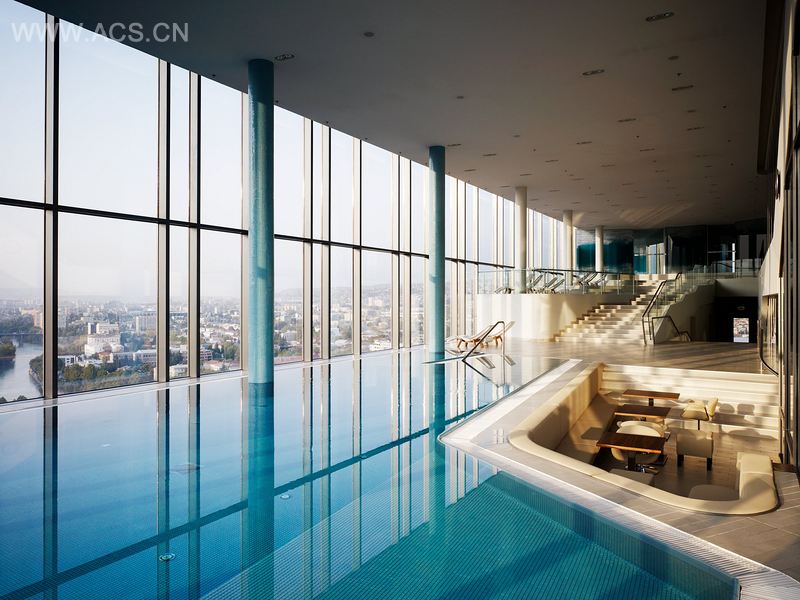 该项目的设计目标是将一个现代主义风格的地标式建筑融入当地的自然环境——继承传统,融入世界。格鲁吉亚是一个多元文化的国家,设计团队需要在传统文化交汇处重新发现和定义它失去的角色,使其回到国际中心的位置、东西方发展的交汇点。基于对 70 年建筑形式和其原始状态的尊重,设计保留了建筑的原貌,同时重新调整了酒店的主要区域、接待大厅、参观和屋顶水疗中心。良好的视野,使住客将城市环境和北部的高加索山脉尽收眼底。设计的重中之重是在保持独特传统的同时,展现格鲁吉亚辉煌的未来;不忘历史的同时,积极面对将来——这就是真正的 GRAFTing !
