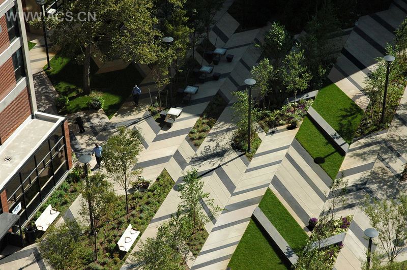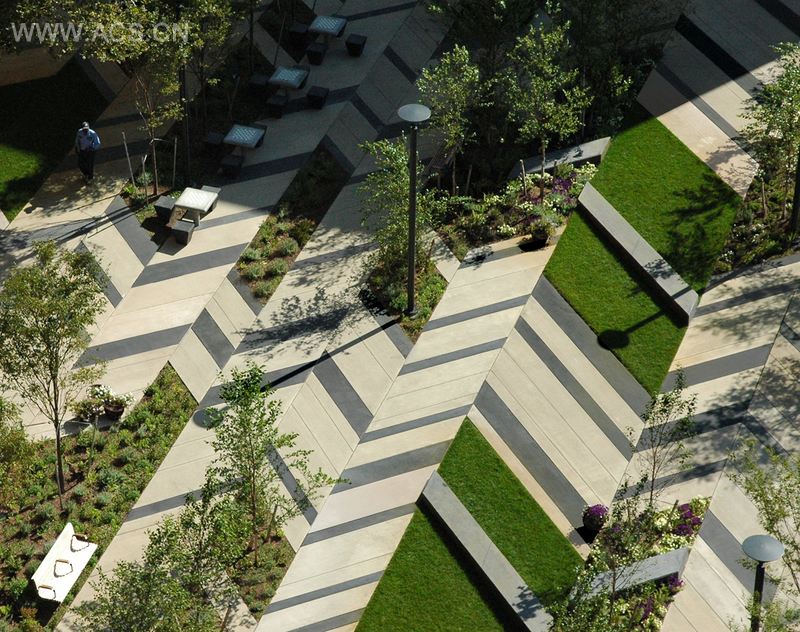 项目的构思是它作为城市里的小森林、作为公共集会空间能举办一些有意义的聚会和休闲活动,满足多元文化需求。草坪沐浴在阳光下,也可作为大型聚会活动动场所,如庆祝中国农历新年、俄罗斯团结日等等。广场的景观设计借鉴了新英格兰地区的花园。而图案本身是基于住宅景观的人字形图案设计。人性化的广场空间可允许直接访问。种植的植物能适应城市严苛的气候条件。设计考虑到居民关注的问题,能够尽量过滤掉周围道路的噪音。这个舒适的户外环境能消除等级区分,附近社区的所有居民都能来这儿下象棋、打太极、沉思等等,考虑到不同的活动,彰显了广场的团结和民主性。
