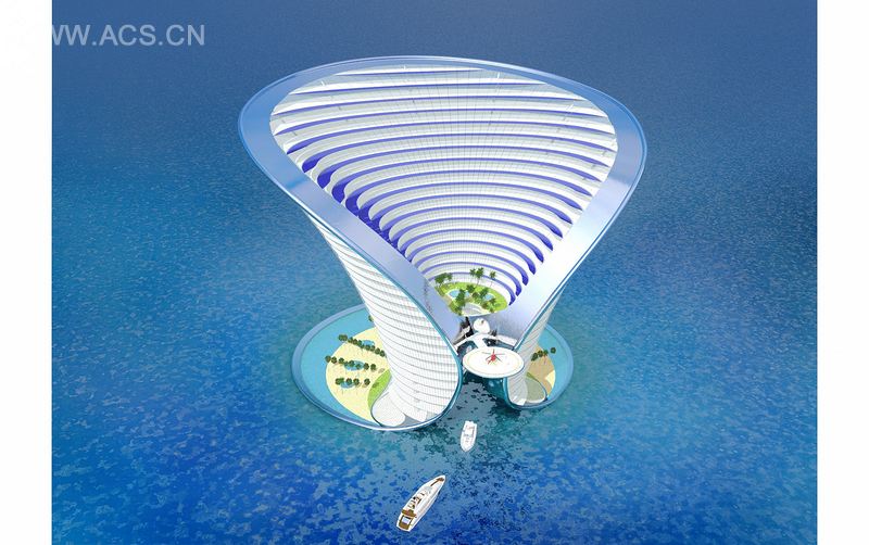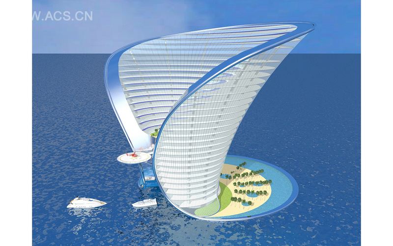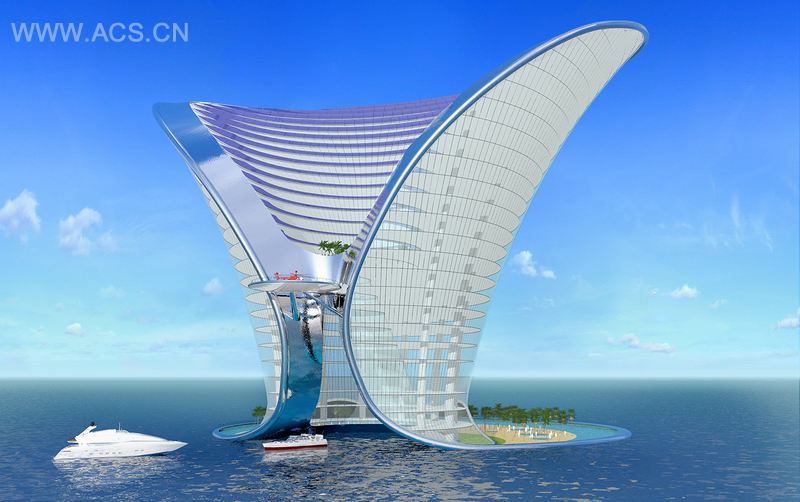 该项目是詹姆斯 • 邦德最后的避所,以私人泻湖、海滩、餐馆、画廊、豪华购物、电影院、水疗中心和会议设施著称。其地平线上的戏剧性轮廓,将会举世瞩目。访问这个七星级度假村,仅限于水陆 ( 游艇 ) 和空陆 ( 直升机 )。由于特殊的设计,游艇将停泊在建筑的核心部位。在自然中寻找灵感,吸收地中海地区的古老工艺,设计团队利用了海蒸技术和对流通风,来保证自然制冷的功效。建筑形状和材料的运用,有效抵挡了日晒。百叶窗包含在建筑内侧的结构部分,防止直接的太阳辐射,并配置了太阳能电池,就像建筑的丝带框架,也因此得名 Apeiron( 意味着无限 )。以此推算,建筑将生成三分之二的自给能量。