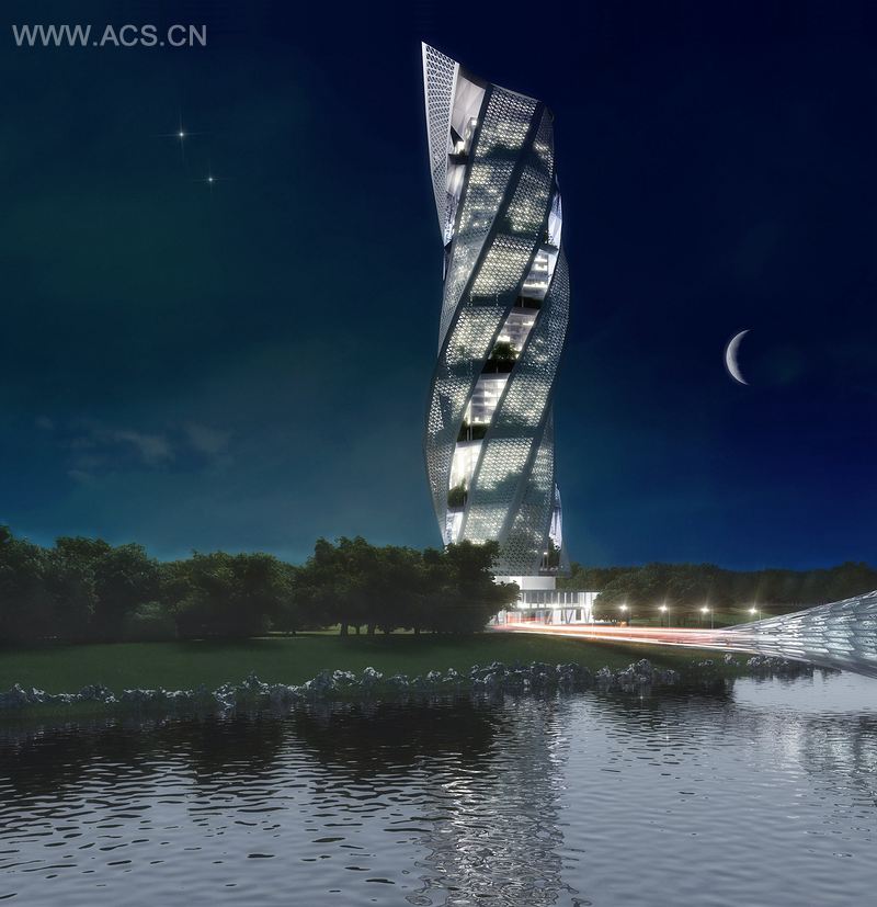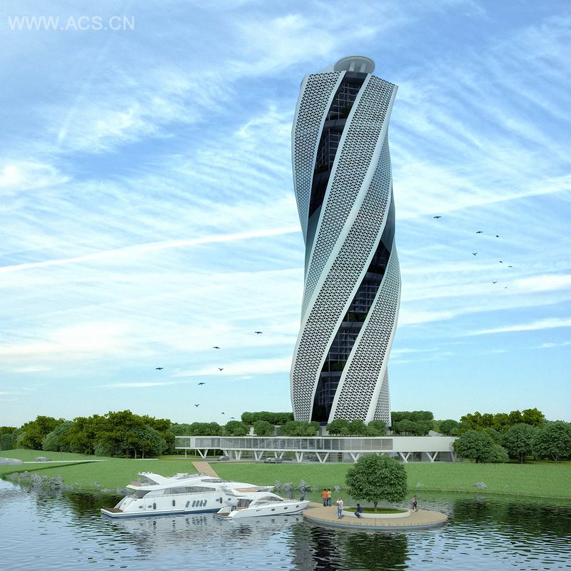 尖塔酒店是一座五星级豪华酒店,由大三学生 Milica Stankovic 和 Vuk Djordjevic 在酒店规划工作室设计完成。通过地块筛选,他们最终选择了War Island,一个位于城市中心多瑙河上、完全被人遗忘的岛屿。设计的主要目的是建造一座能成为城市新地标的高层酒店。建筑富有表现力的结构包括内部的“核心”和多孔的外表面。外表面由 7 个旋转的衍架支撑,呈倒棱的三角状。一系列绿化楼层和延伸楼层,更是加强了建筑的动感。