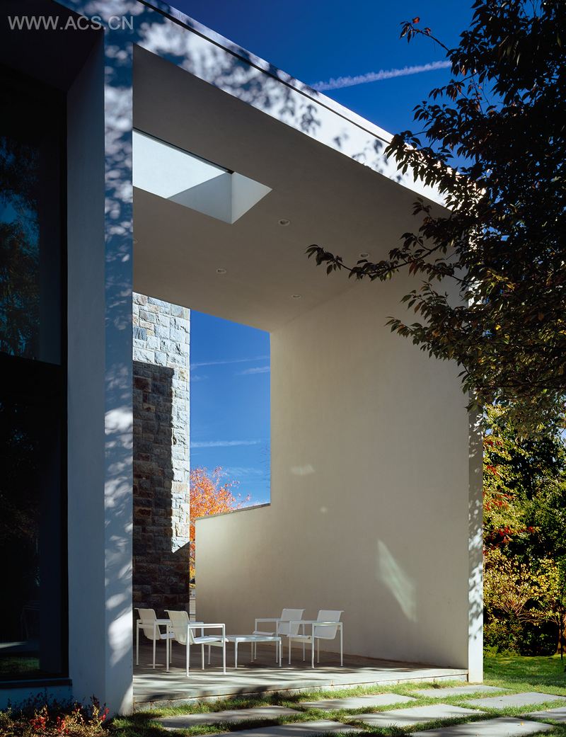 新别墅彻底改造原有的建筑体块,线型的粉饰灰泥墙概念性地包起和保护内置的石楼。大面积的玻璃平面板材将私人空间的墙壁连接至别墅核心,同时为室内和室外景观营造过滤。自始至终,设计都将石材、木材以及金属建筑这些元素构思为工业产品和艺术作品的并置。而缩小这些元素鸿沟的过程营造了一种张力,在精制的厂制产品和原料上都有体现,原料后来则经过精巧的手工制作和放置。