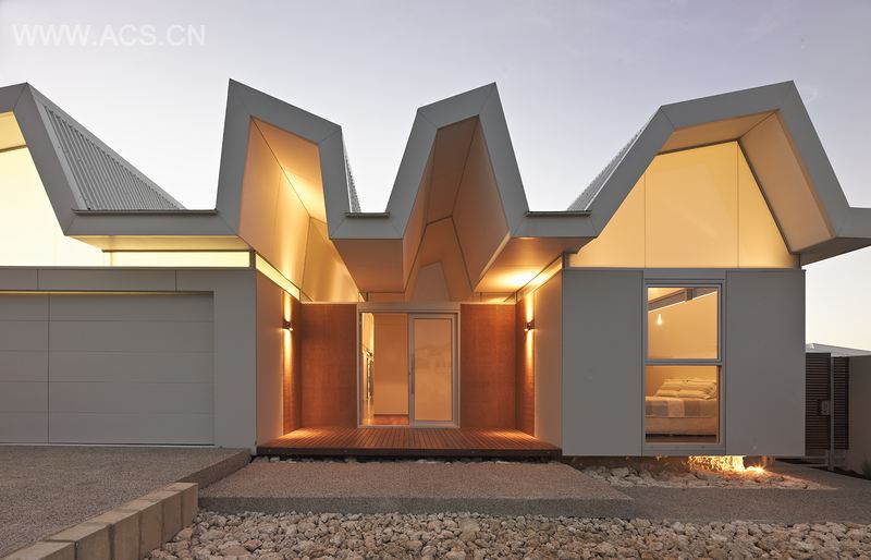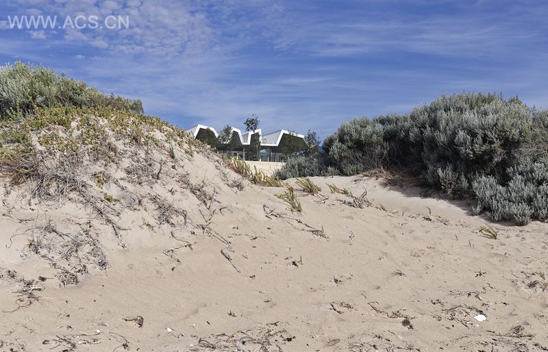 本案位于“佛罗里达海滩”,一个二十世纪七十年代的游乐场,距离佩斯南部一小时车程,已经被城郊化扩张吞并。过去蔓延沙丘上的“fibro”家庭棚户迅速消失。这些原始的未经设计的粗矿且布局简单实用的度假屋代表着周末旅行者的体验,这些品质也是此间房屋试图要模仿的。