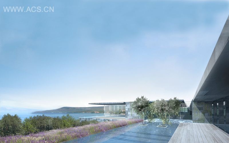 从形式上来看,度假村遵循自然地貌,尽显森林和大海自然原色。水边木板路连接居民小镇和酒店,通向古文化遗址和镇中心。小镇规划的设计,将对环境影响降至最低而将感官影响最大化。一个小村庄,小路沿着地势高低起伏,在中心汇集至顶点。居民楼式样简朴,建造经济,室外到室内过渡和谐,与周围景致融为一体。酒店大楼面向大海,从酒店中心向各公共区域扩展,设计上突出了宁静的自然环境。
