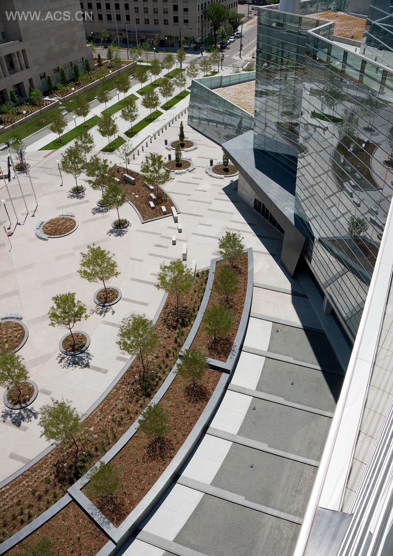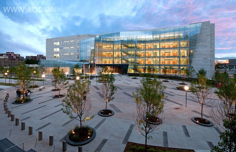 丹佛司法中心校区坐落于丹佛市中心,包括一个新的法院、看守所和邮政局、车库,由国际和本土建筑师设计,校区的重要组成部分是法院和看守所之间的图利广场。广场的铺路图案、装饰照明、休息区、安全护柱、花岗岩座墙、咖啡厅露台都令人印象深刻。结合大规模私人和公共投资,丹佛司法中心校区成为了美感与功能齐具的成功典范。该广场有着不同的层次结构和顺序,studioINSITE将不朽的设计特点融入公共艺术,并影响了相邻的街区。务实的设计美学也确保了赏心悦目的城市设计元素中的安全性。最后营造了令人印象深刻而颇具启发性的公共空间,美化了丹佛市的城市肌理。