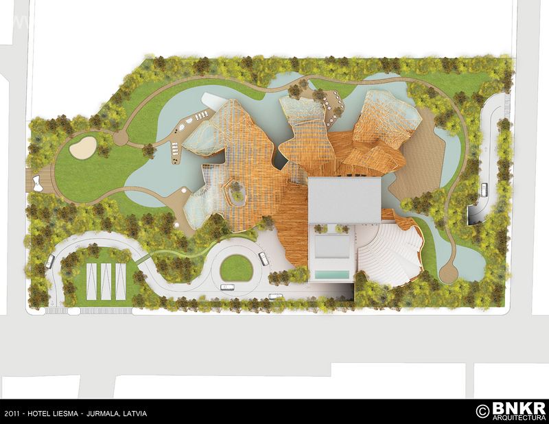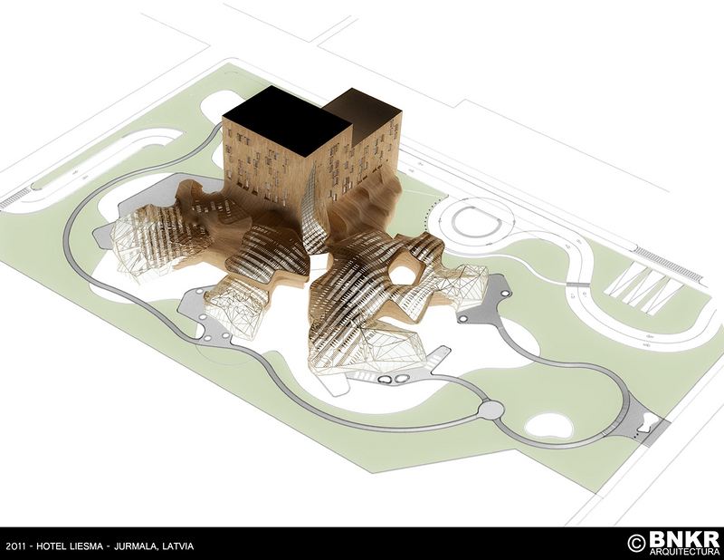 这家酒店拟在现实中再现转瞬即逝的声音传播过程。这种过程外部表现为震动,随后消失。它逐渐衰退,接着在宇宙空间湮没。