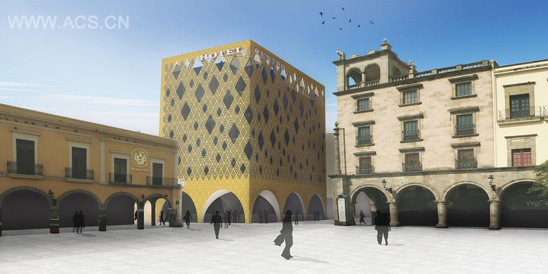 建筑外立面由钻石型元素组成,取意于风格独特的“Ojo de Dios”结构。它旨在成为该建筑严密而内弯的“皮肤”,酷爽的阳光由此渗入卧室,同时带来一种特别的光照效应。特罗酒店定位于当代的旅游酒店,传承本土文化,彰显历史底蕴。
