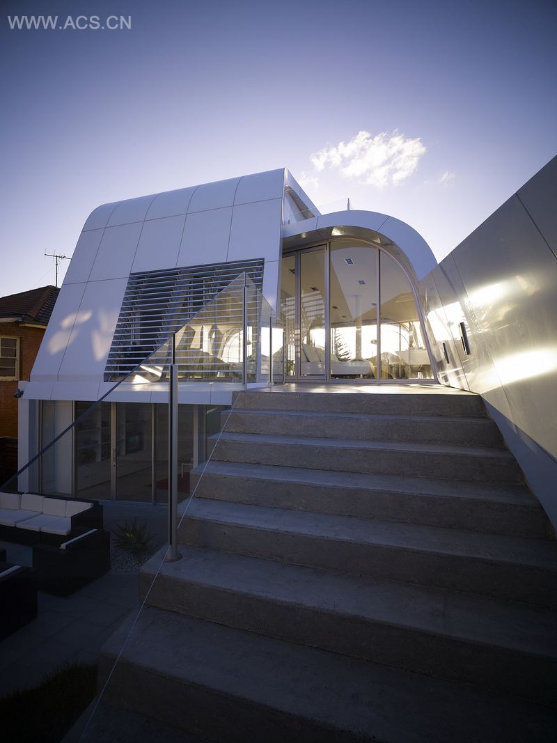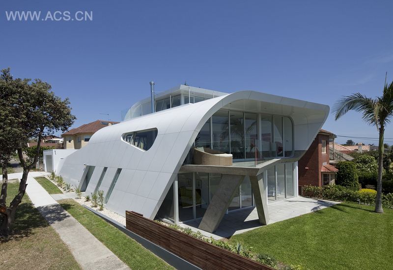 这套住宅面对着悉尼歌剧院和海港大桥,它探索了 “微观设计”。微观设计对环境更敏感,它采用参数化建模软件,可以应对设计标准非常小的变化。项目独特的外形可以保证视野和适量日照。