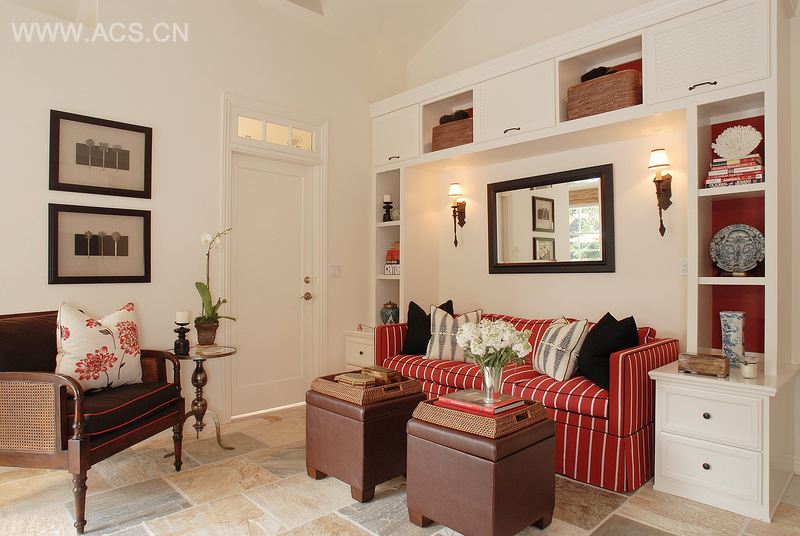 总部位于洛杉矶de The Richman Group中Matt Richman 建筑师和Annette English & Associates的Annette English室内设计师运用浪漫的细节来赞颂配合该房屋的历史,比如内置橱柜、定制壁炉和精心策划的艺术品和古董。