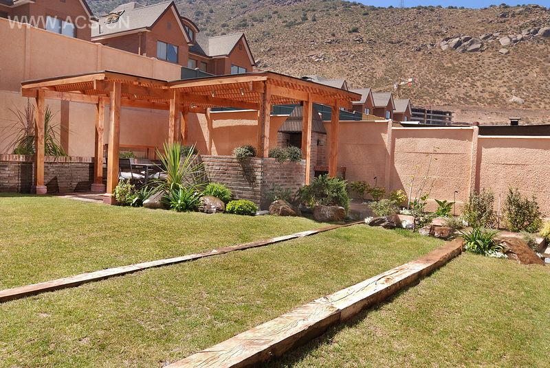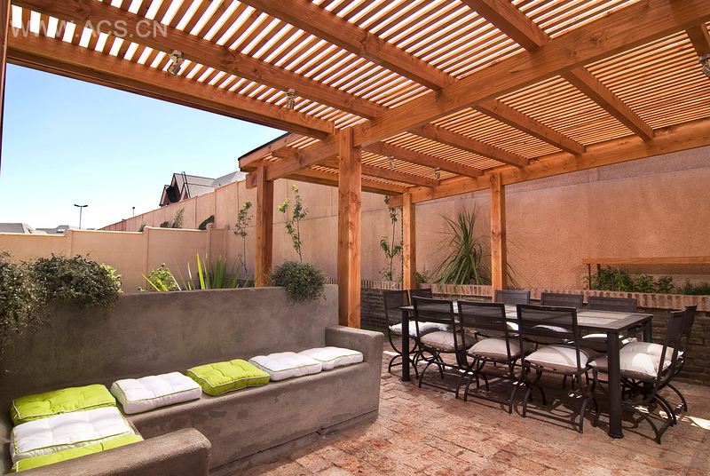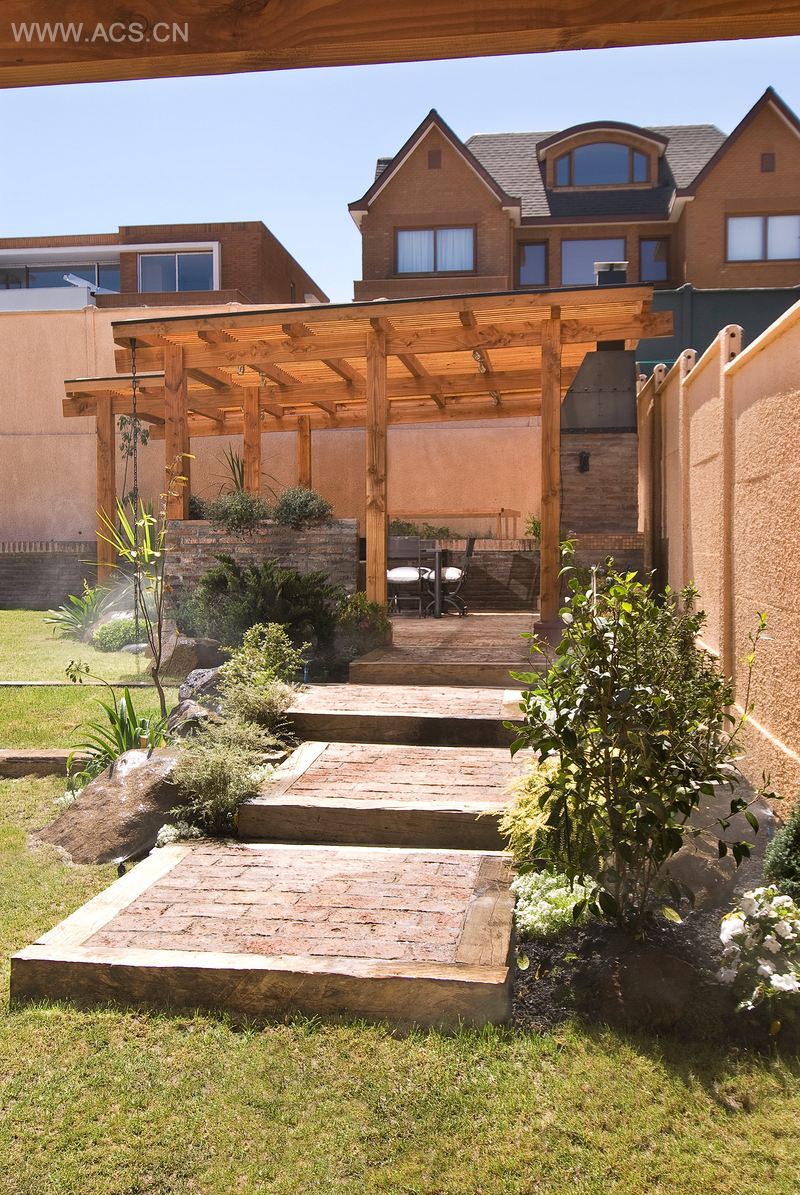像木制的烧烤场和露台这些地方形成的光线屏风,但跟凸显自身高度的枕木以及按照地形需求设置的阶梯一起,强调了实际空间的使用意图,从而赋予了景观价值。该设计提出了一种整齐与和谐,由于户外空间使用的意图,并通过材料如砖和混凝土的应用,结果是将居住者几乎是放在了室内居住模式中。