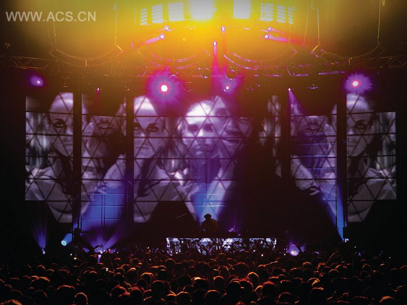 时刻工厂同时设计了适应各种设备及会场尺寸的视觉内容及技术设置,从体育馆到较小型的夜店环境都涵盖其中。铁斯托和一个VJ(影像骑师)将现场图像素材及音乐表演加以利用并重新合成,创造了一个同步化的视听体验。