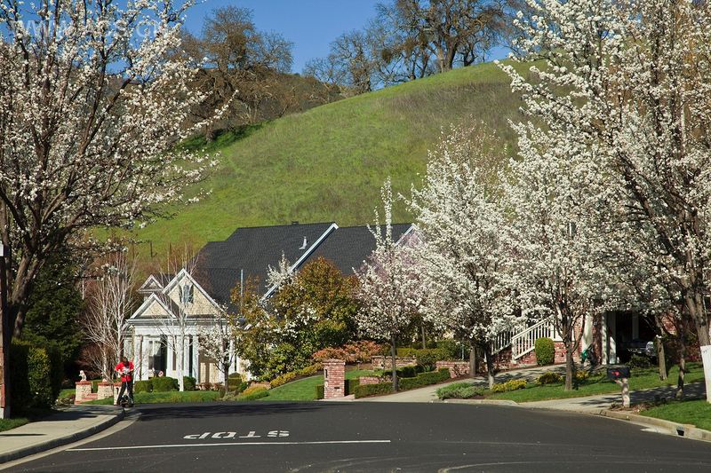 该案是位于加州康特拉科斯塔县郊区的一座540英亩的美丽山坡牧场,拥有257间定制和半定制的住宅。设计保留了1000多棵橡树,当房屋位置分段完成后,此地保留了其以前的地形和树木。新景观设计通过采用石头、果园和花园凸显该地区自然美。入口道路的设计是为了适应丘陵和创造隐蔽山谷的神秘性,房屋就设置在山谷中。入口处,华丽的橡树和小溪被保留作为入口处的特色。