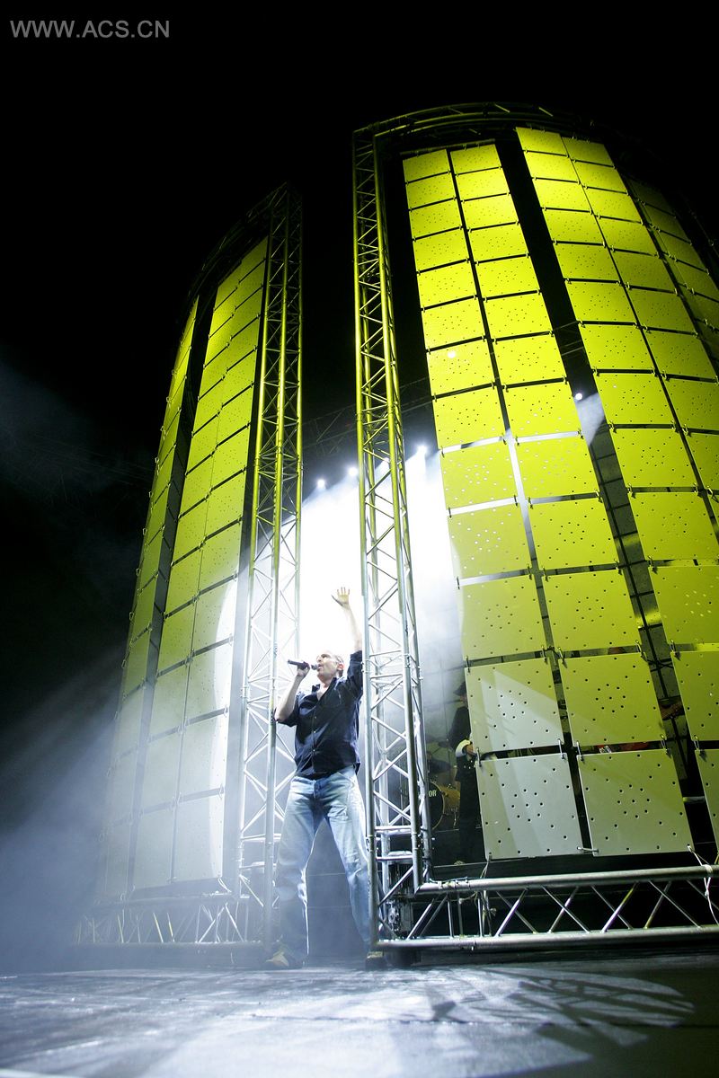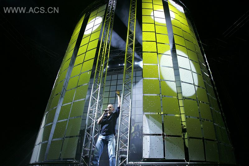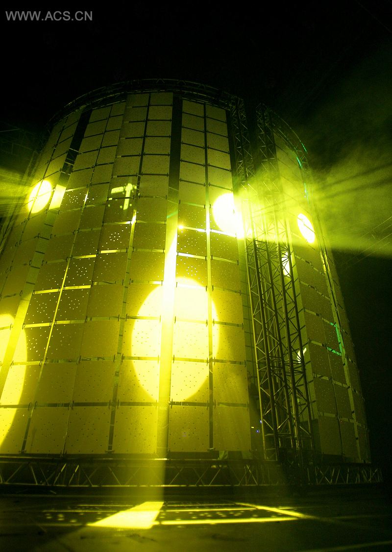 圆柱打开,乐队出现了,由不同影像艺术家制作的特殊设计投射也开始展示。投射和灯光为不同的歌曲营造出深度和氛围。面板与一条能控制开和面板的调整式轨道相连,以创造出更多的舞台结构。通过布景运动、投影以及灯光组合成不同的效果,为每首歌曲带来独特的布景景象。