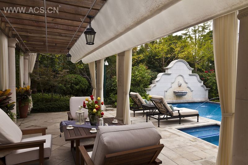 2、将会所建筑采用的铺装图案、墙壁、喷泉水景、花坛、修剪整齐的树篱、家具、花盆和雕塑的材料与相关建筑风格结合起来。