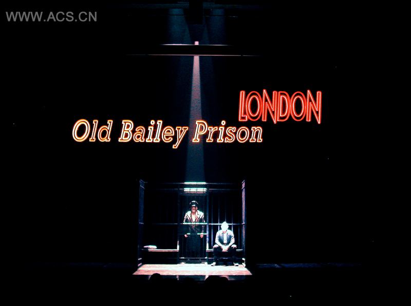 德里克·麦克莱恩用大型的霓虹灯说明每个场景的位置,它们流动于每幕场景之中。有些标示高3米,宽8米。光亮的霓虹灯给舞台营造出有点像是鲍勃·福斯式的灯光效果,其灯光还反射在了富有光泽的黑色地板上。当这些标示一起流动并发亮的时候,创造出了一种壮观的舞台效果。